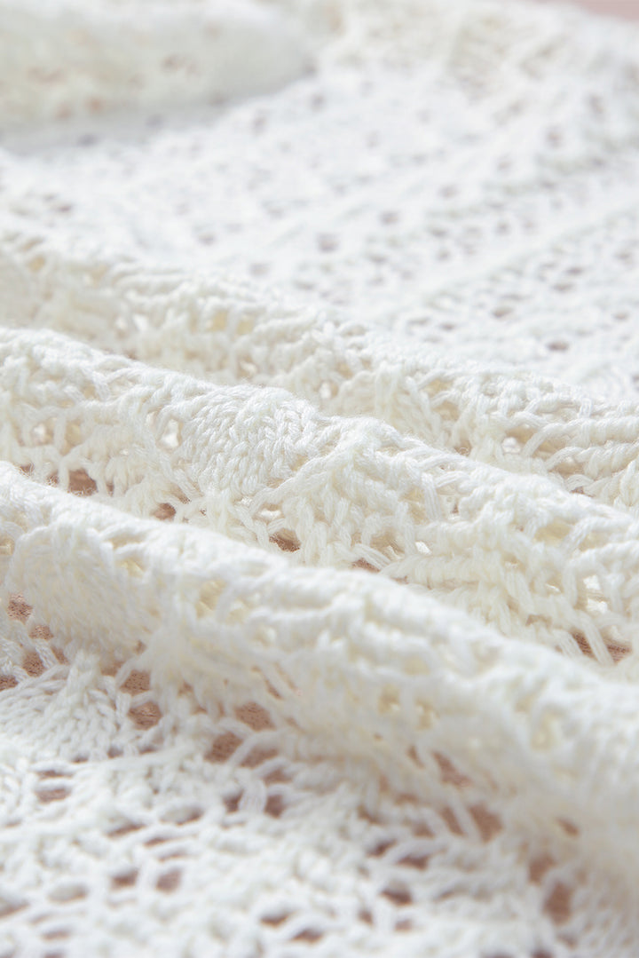 White Stylish Hollow Out Knit Drop Shoulder Cardigan