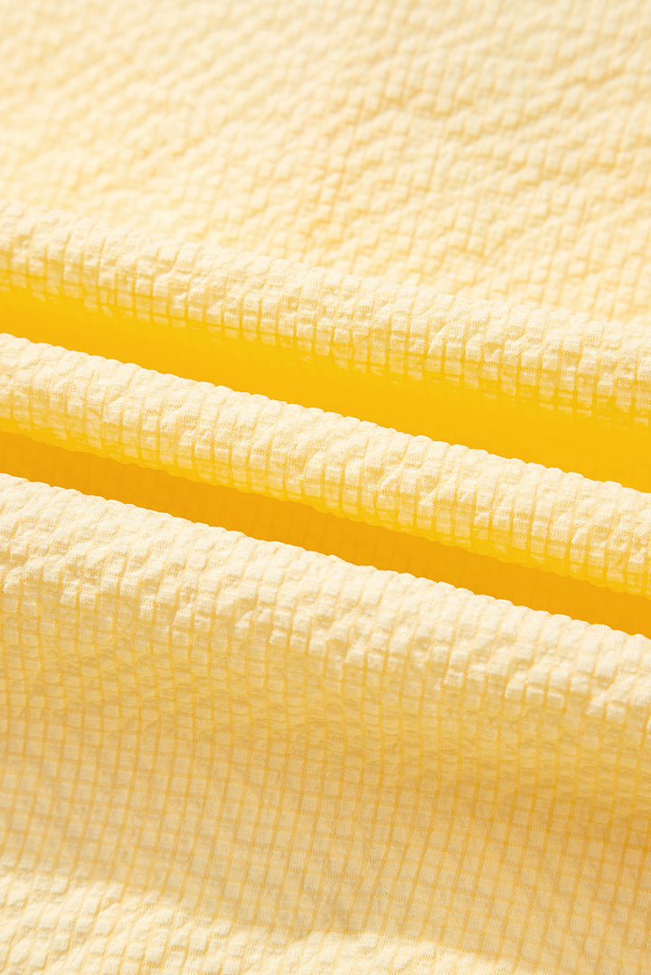 Yellow Cream Bow Tie Notched Neck Pleated Tank Top