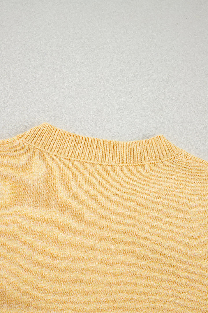 Yellow Cream Cute Flower Applique Short Sleeve Sweater