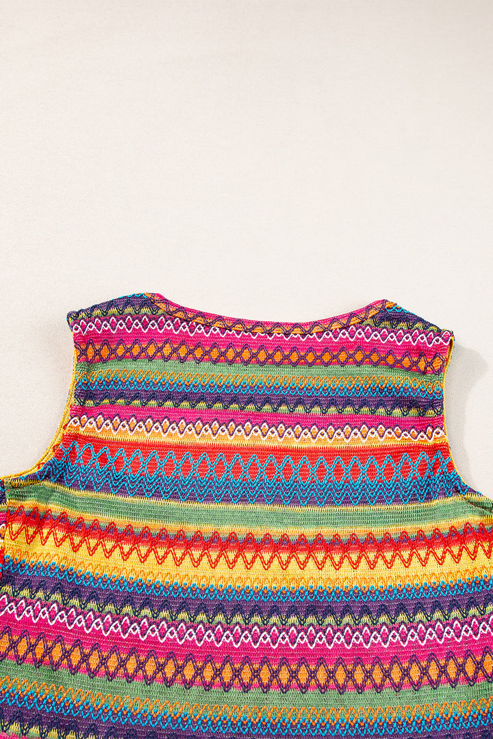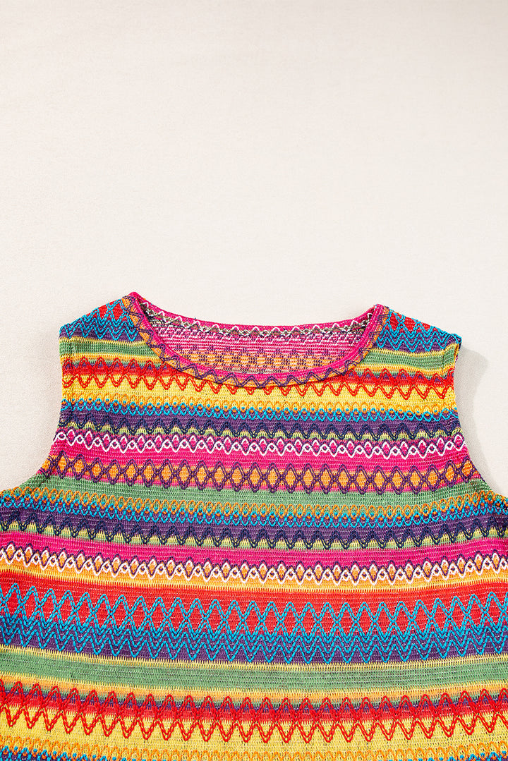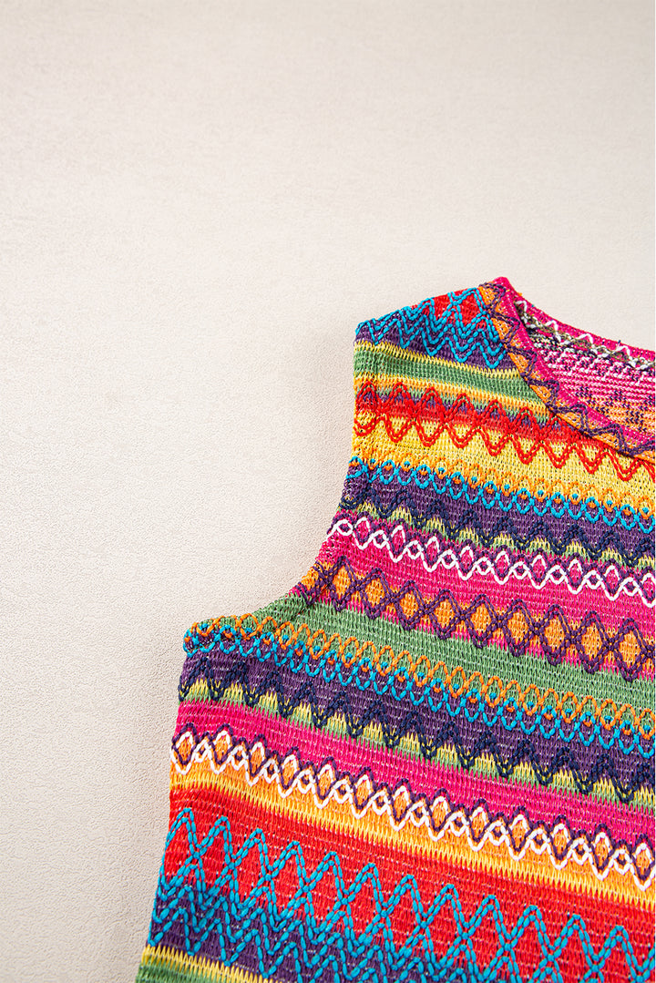 - Unique ethnic wavy pattern creates this tank top a trendy look